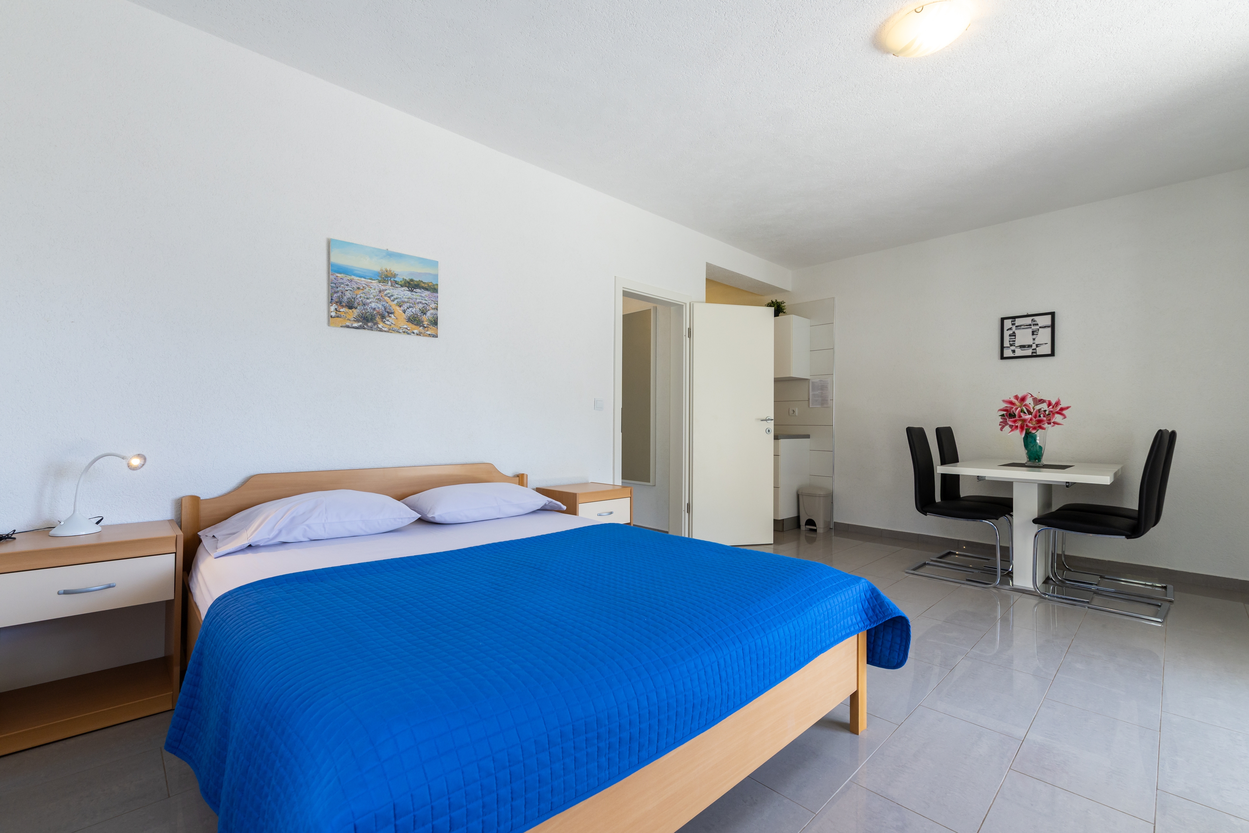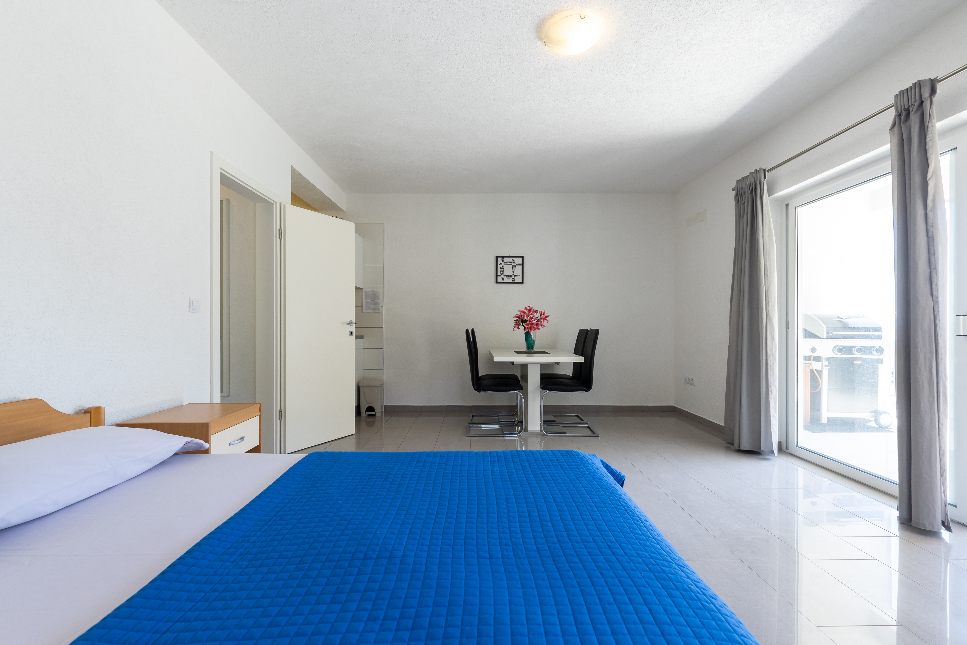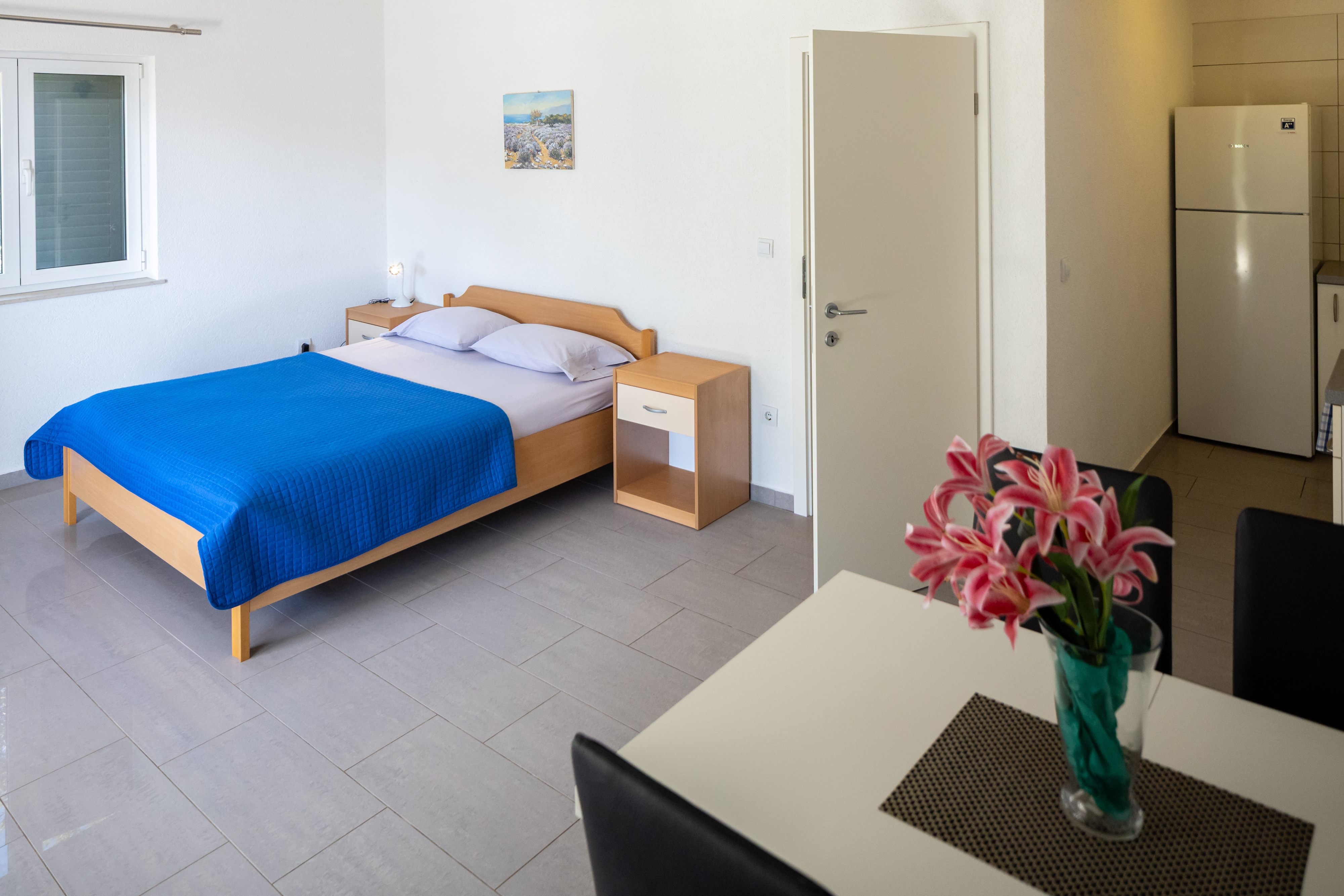Apartament może przyjąć 4 gości. Łóżka znajdują się w sypialniach, których jest 1, oraz w pokoju dziennym, na powierzchni 40m2. Goście mają dostęp do tarasu, by korzystać z ciepłych, letnich wieczorów. Z apartamentu roztacza się widok na morze. Możliwość przygotowywania posiłków poprzez korzystanie ze wspólnego grilla. WLICZONE W CENĘ: taksa pobytowa, sprzątanie końcowe, parking, internet, łóżeczko dziecięce, przenośny grill. Dostępność dodatkowych usług w rezerwowanym terminie oraz ich cenę (jeśli nie jest podana) należy sprawdzić wcześniej. Za dodatowe usługi, które nie zostały uwzględnione w kalkulacji ceny, płaci się bezpośrednio właścicielowi obiektu, pod warunkiem śe gość korzysta z tych usług.